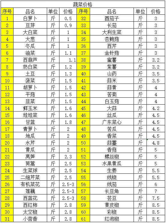 1、蔬菜价格