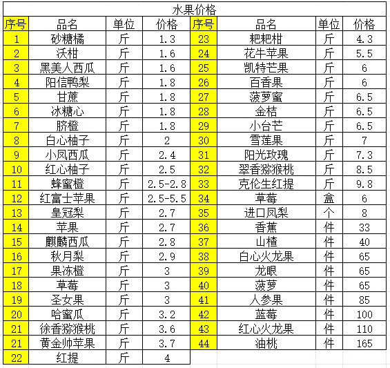 2、水果价格