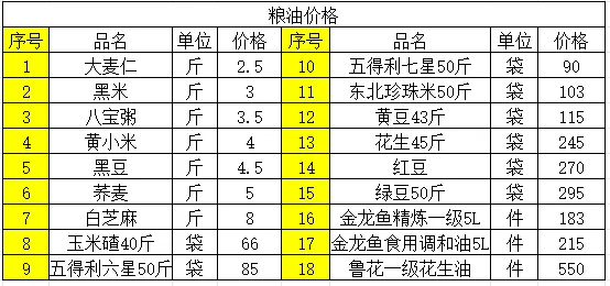 3、粮油价格