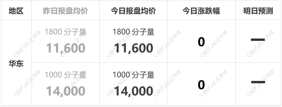 周二,氨纶目前成本端BDO/PTMEG价格持续上涨,成本端支撑走强。广东海宁等地对氨纶需求平平,下游主要常规进货。看好氨纶对BDO/PTMEG的长期支撑,但短期氨纶需求未见明显上涨。截止目前,1800分子量PTMEG主流货源参考价11,600-12,600元/吨。非氨纶领域,浆料清淡运行,近期需求趋势偏弱。TPU偏强运行,但下游需求略显疲软,短期内成本传导不畅。PBT下游装置稳定,但市场供应宽松,价格看空因素较大。截止目前,1000分子量PTMEG主流货源参考价13,500-14,500元/吨,2000分子量PTMEG主流货源参考格12,500-13,500元/吨。