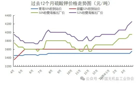 加工型硫酸钾中,曼海姆50%粉硫酸钾出厂均价3,950元/吨,与上周持平;曼海姆52%粉硫酸钾出厂均4,250元/吨,较上周涨50元/吨。