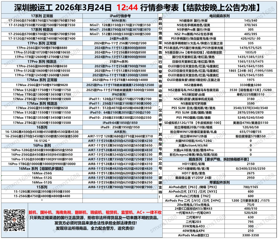 市场行情时刻波动,不一定全部更新到位,报价仅供出货参考。每晚会群公告公布实际结算价。我们是代卖模式,非定价接货,非咸鱼/顺丰上门打款。请知悉!感谢各位老板的信任与支持!