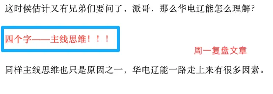 并聊到了理解华电辽能走出来的核心点是:主线思维!