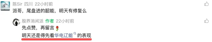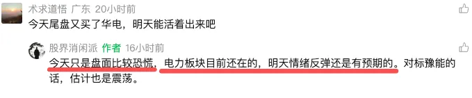 派哥,明天如果普涨,电力还有预期吗,报团会不会垮?(来源于公众号文章评论区截图,仅供参考与交流,不构成任何投资建议,决策依据或交易引导。据此操作风险自负,股市有风险,投资需谨慎)