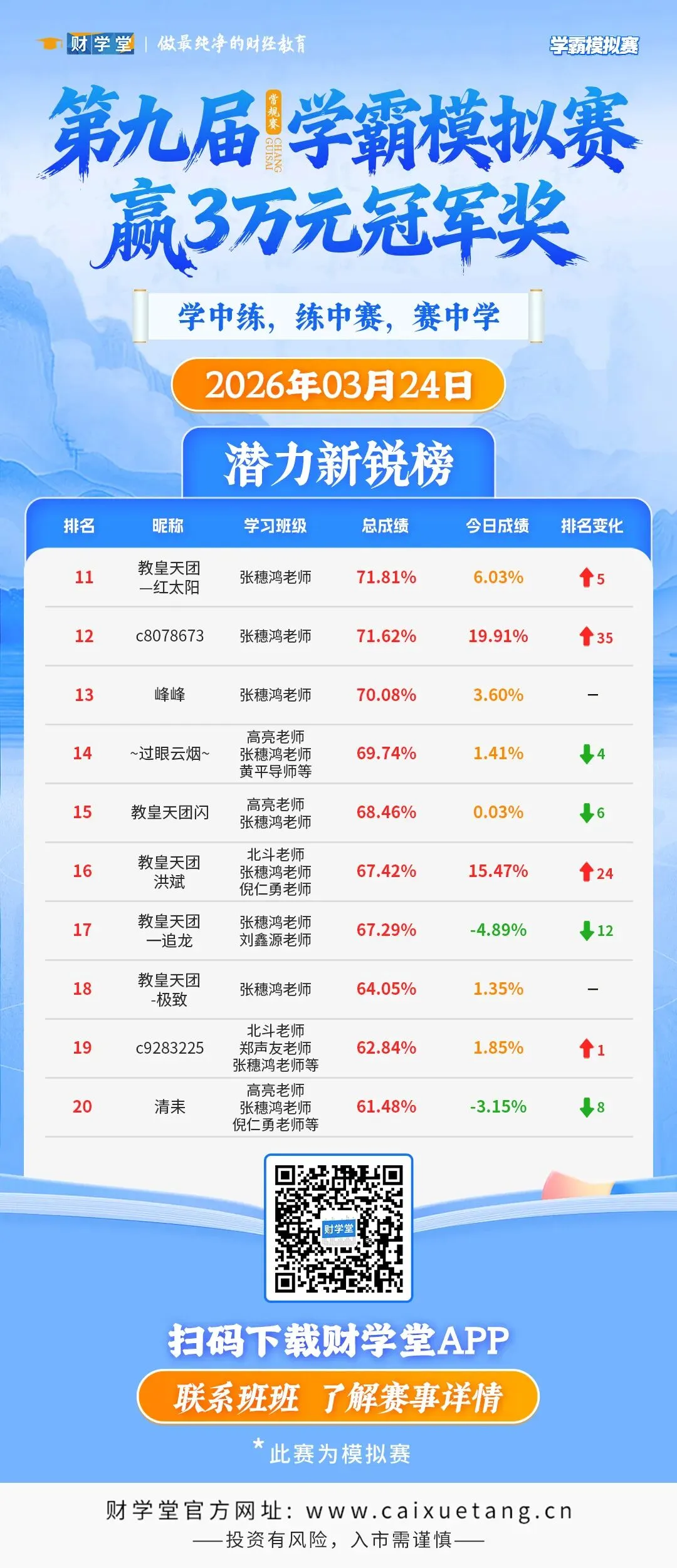 第九届“学霸模拟赛”连着几天不太舒服,今天市场总算给了点“缓一口气”的感觉。指数震荡中带点修复,盘面也没那么压抑了。有人开始找回手感,有人也在慢慢把节奏拉回来。你今天是顺起来了,还是还在适应?