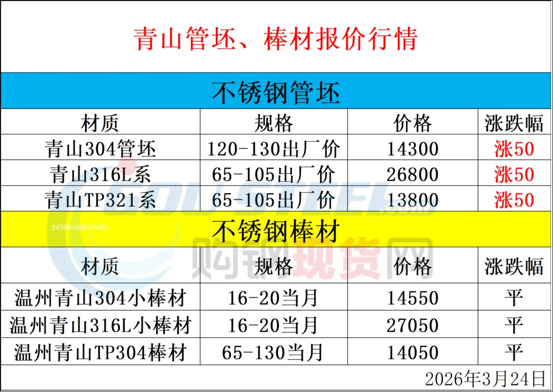 >3月24日青山管坯、棒材报价行情