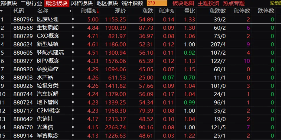主线明确:重点盯着 环保(监测 / 设备 / 医废) 和 基建(装配式 / 地下管网),这是资金抱团最紧的方向。