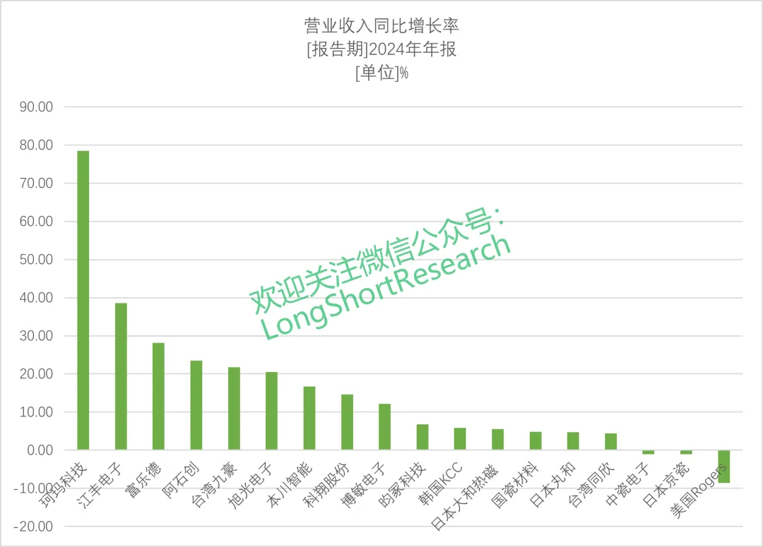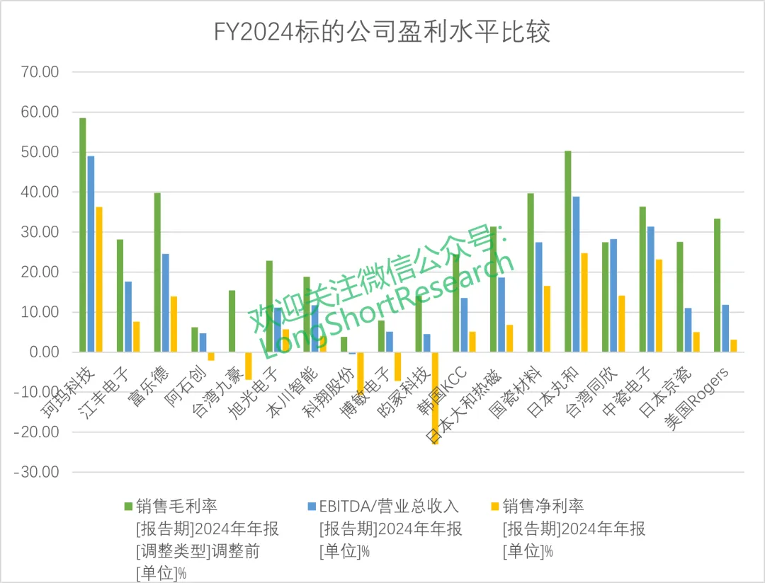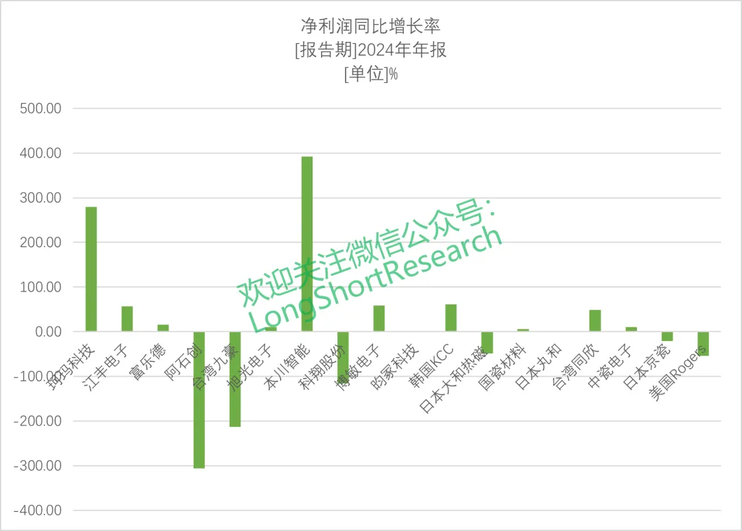 ,台湾九豪、科翔股份、美国Rogers、ferrotec、日本京瓷净利润下滑明显