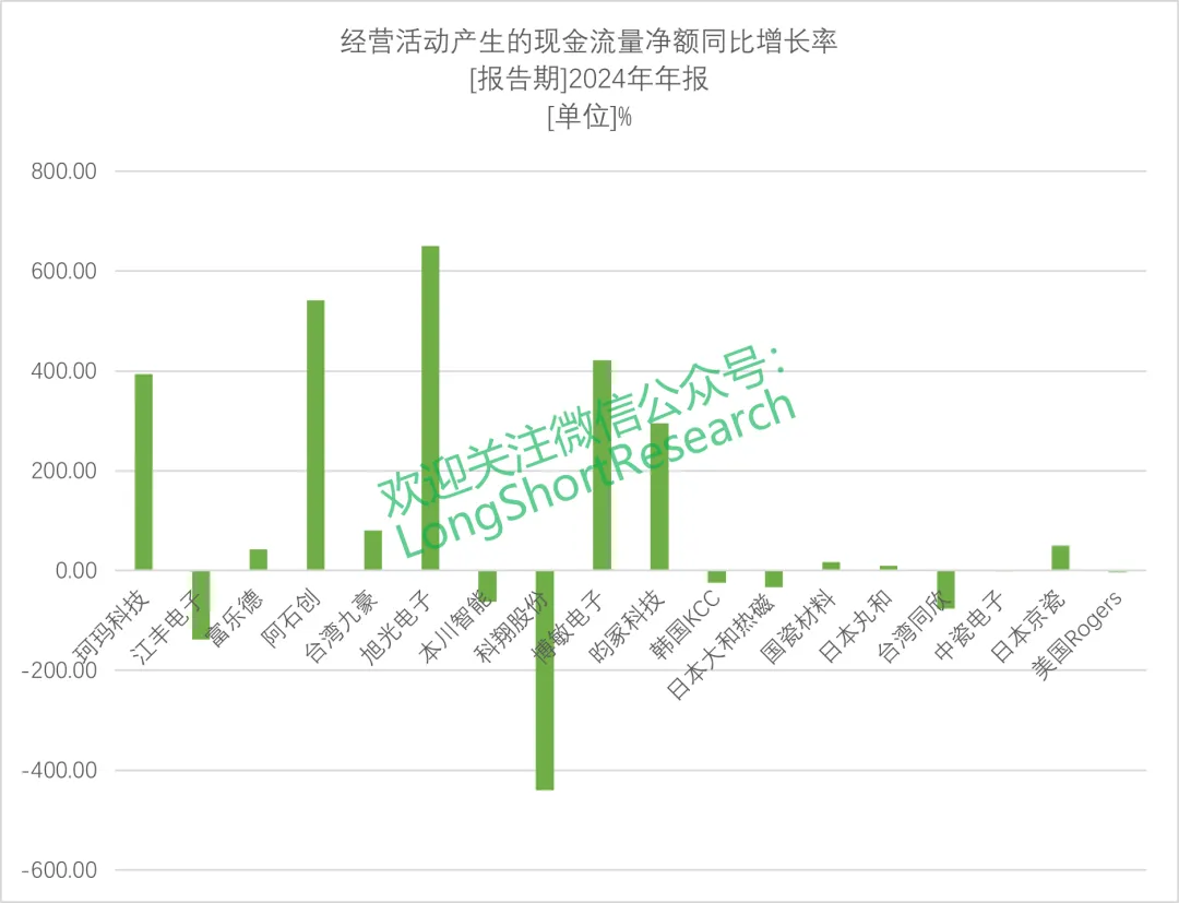 国瓷材料、中瓷电子、江丰电子和日本丸和、ferrotec、日本京瓷、台湾同欣、旭光电子的净资产同比增幅超过中位数水平(median=同比增长3.75%),
