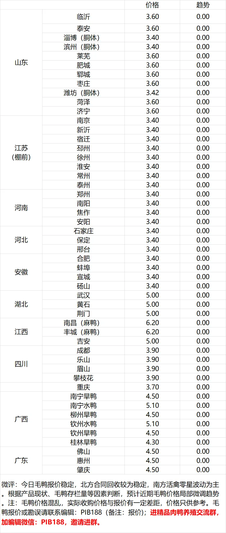 1、明日鸭苗(单位:元/羽)