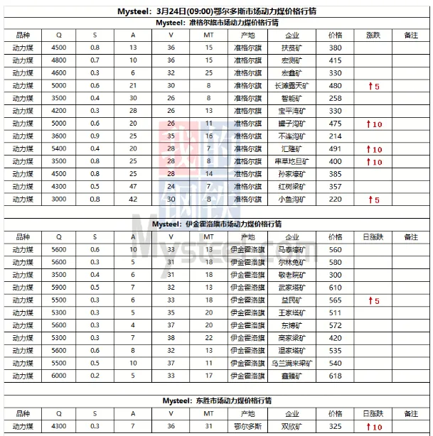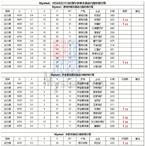 下游方面,目前因进口煤到岸成本高于内贸煤,沿海电厂将一部分采购重心转回国内市场,短期内或继加大内贸市场转移力度,刚需采购有望进一步释放。天气方面,从明日起,南方降雨减弱,新疆、青藏高原的雨雪天气稍强,新疆北部和南疆南部山区、西藏大部、青海中南部、川西高原中北部等地部分地区有小到中雪或雨夹雪,其中,新疆沿天山一带和阿勒泰、西藏东北部、青海南部等地部分地区有大到暴雪。【非电综述】金三银四传统非电需求旺季开启,建材、化工等行业开工率稳步提升,叠加原油价格上涨带来的外溢效应,非电用煤需求将稳中有增,终端采购心态偏谨慎,采购需求持续不及预期,企业在短暂补库后又进入观望状态。