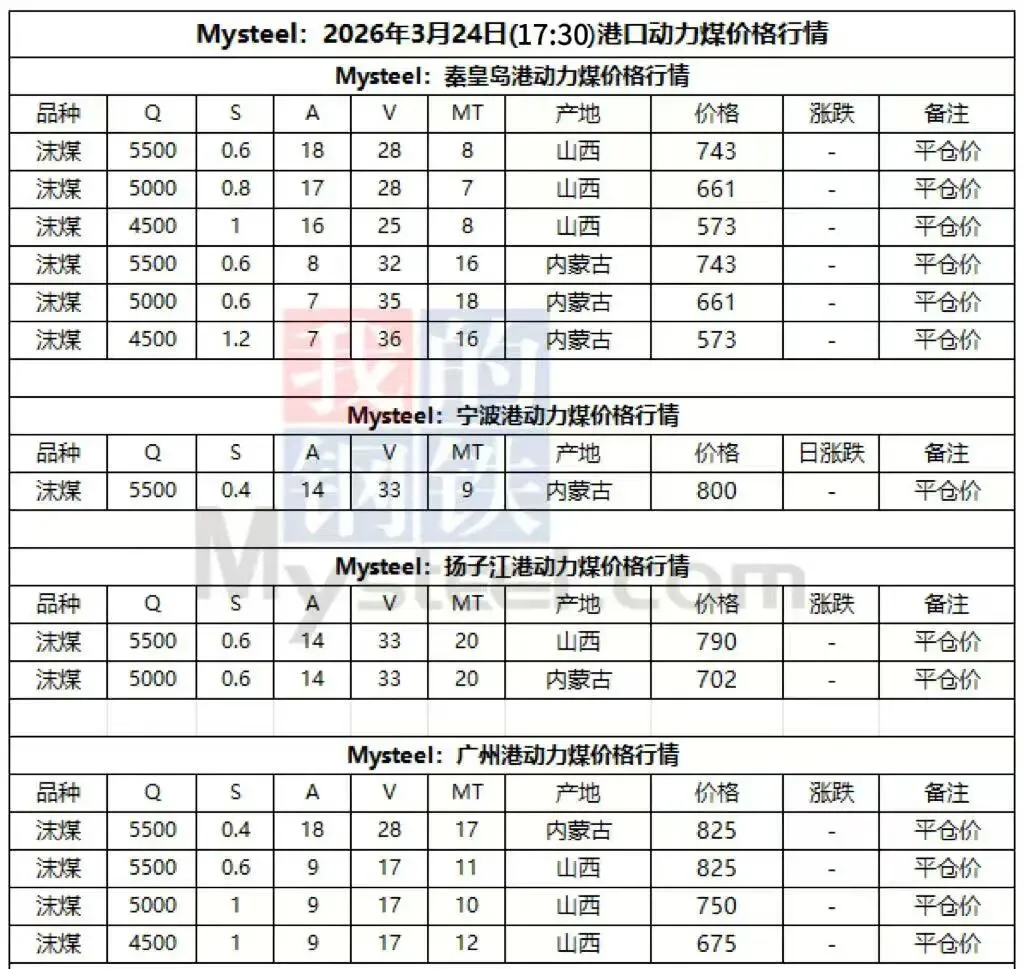 24日港口市场动力煤偏强运行。产地价格上调导致发运成本抬升,贸易商发运较为谨慎。叠加大秦线检修预期,下游询货问价现象有所增加,现货贸易商报价坚挺。刚需补库拉动成交重心上移,但实际成交有限,预计短期内煤价高位震荡运行,后市需持续关注港口去库速度和实际成交情况。