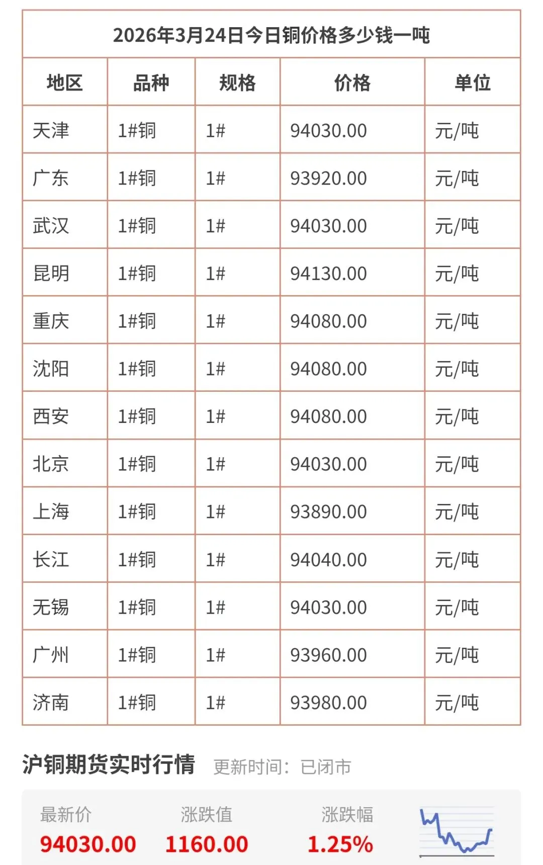 >今天铜价实时查询!现货铜价格行情走势图今日回收多少钱一斤(3月24日)