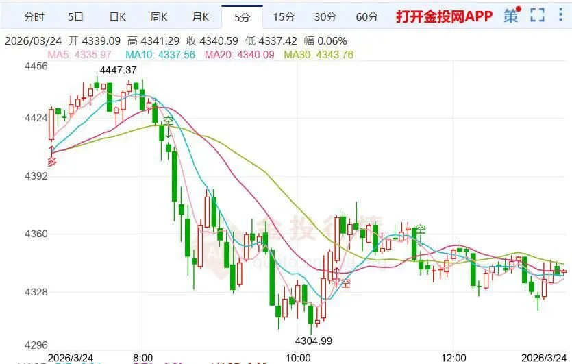 • 盘中最低下探4099美元,创四个月新低,午后小幅修复