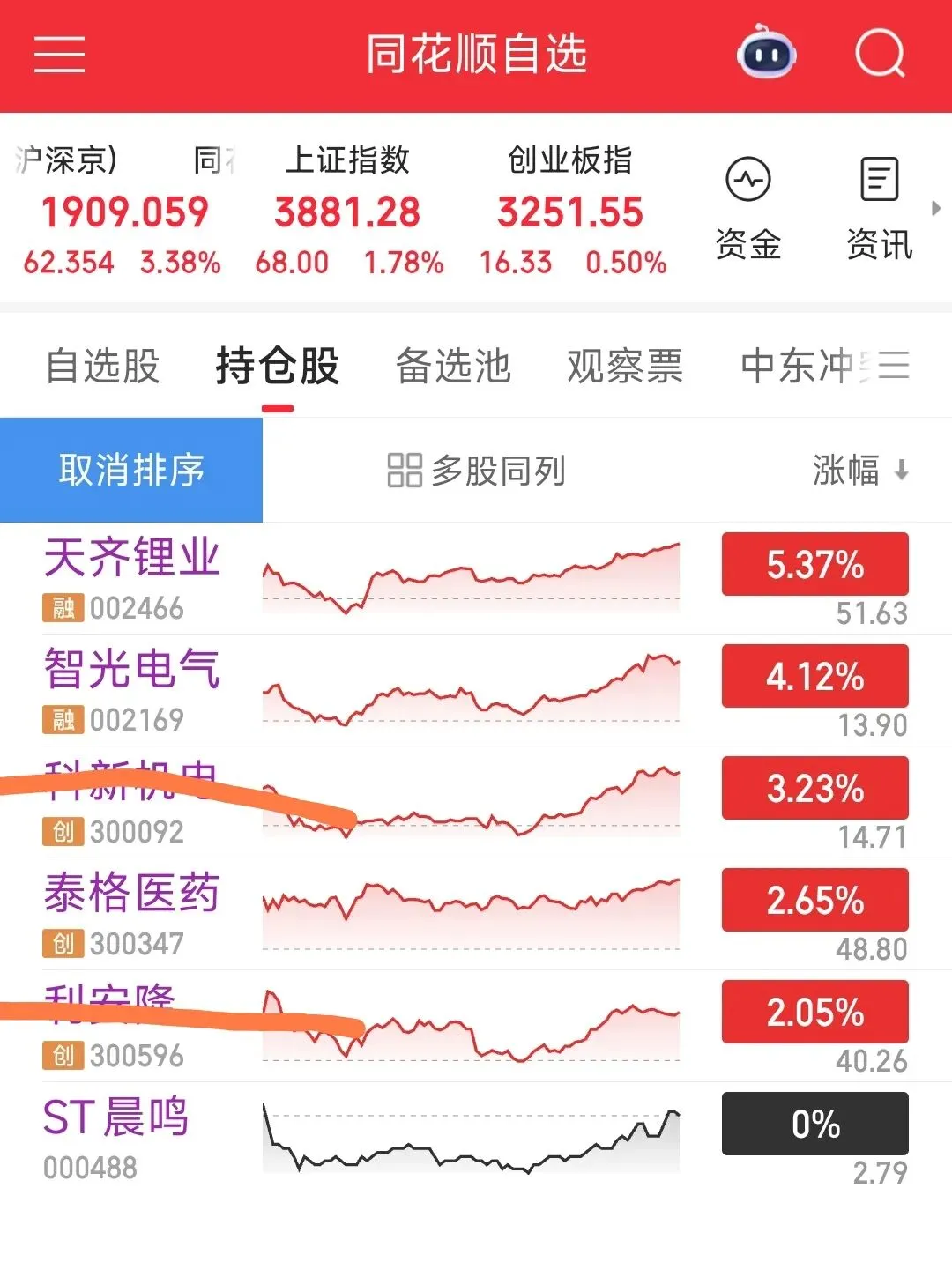 指数和昨天相反,后续指数走势可能呈现乒乓球曲线,下跌反弹再跌下,震荡中选择方向,除了大事情发生,比如美军和伊朗发生更激烈的战斗导致,伊朗彻底断了后路,攻击所有能源设施,油价飙升。一个是因为它已经涨了两三个月,需要调整,里面散户比较多,需要洗。其次,在今年的高油价下,顺周期的逻辑有障碍,虽然能涨价,但是需求端是萎缩的。即使立马停战,油价今年会维持在相对之前的高位,群众的消费力被稀释,自然也就没钱消费了,细分领域和炒作不在讨论范围内。重点看风光储核,创新药,电气设备(ai可以,但是我不懂)。逻辑很简单,油价上涨会带动新能源的投资增加,经过这次的中东战争,各国会更加注重能源自主。重点看风光储核和电气设备,氢能技术还没有达到普及商业化,范围稍微狭窄,电动车的普及率会提高,风光储核都离不开电气设备的建设,ai也离不开。鹏辉能源,东方电缆,锦浪,宁德,璞泰来,星源材质等药明康德业绩超预期,加上医疗医药是刚需和出海BD逻辑,调整也很久了,今天普遍强势。早上出了利安隆和科新机电,进了天齐锂业和泰格医药,泰格在早上那波下跌中,和cxo一样逆势不跌,加上泰格快到前几轮的支撑位了,利安隆和科新锂电主要是反弹有点弱,就出了。可惜了昨天卖轮船,操作越多,错误越多,少赚越多,哭晕了。建国想退出了,毕竟耗下去也赚不到什么,还不如换个地方捞钱。后面可能会僵局,留谈判人员和伊朗谈,留以色列和伊朗对耗。