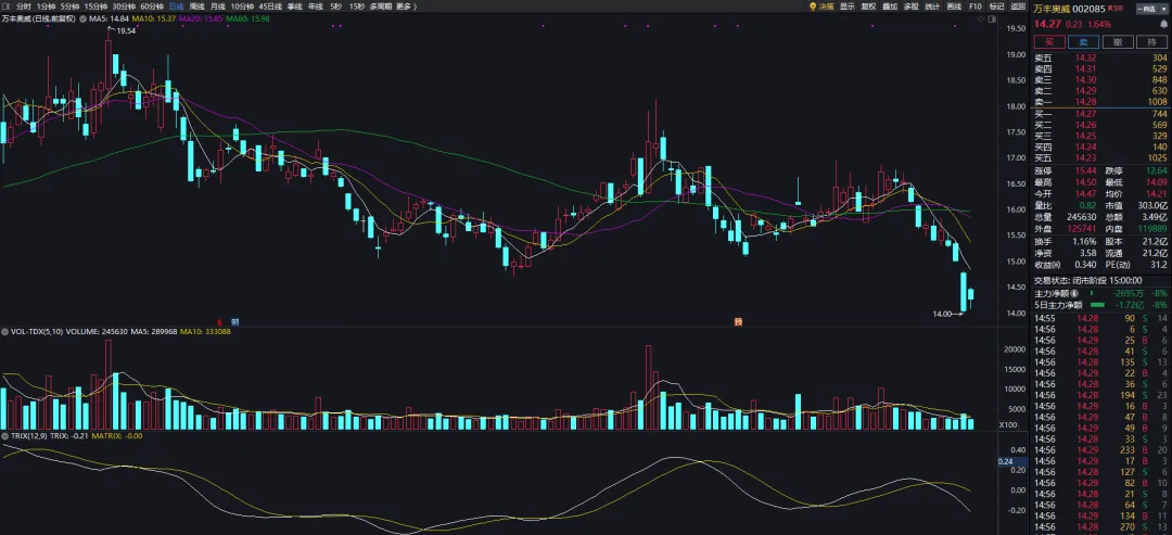 长线票:众合科技收涨,静等站稳5日均线以后再操作。片仔癀耐心布局。苏能股份安心持有。 中线票:万丰奥威收涨,今天的修复严重不及预期,指数都没跑过。短期已经属于超跌,不必紧张,等待企稳后再加点仓位。 张家界持有。莲花控股涨停,主力从2月底到现在,大涨大跌已经洗了3次,绝对是有所图谋,看淡波动,锁仓。人民网收涨,目前处在很好的配置区间,分批加仓即可。短线今天入场长源电力。
