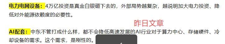 哪怕后续哪怕停战消息出来,能源线可能会受影响,但AI配套和电力电网设备,跟战争结束不结束,半毛钱关系都没有。