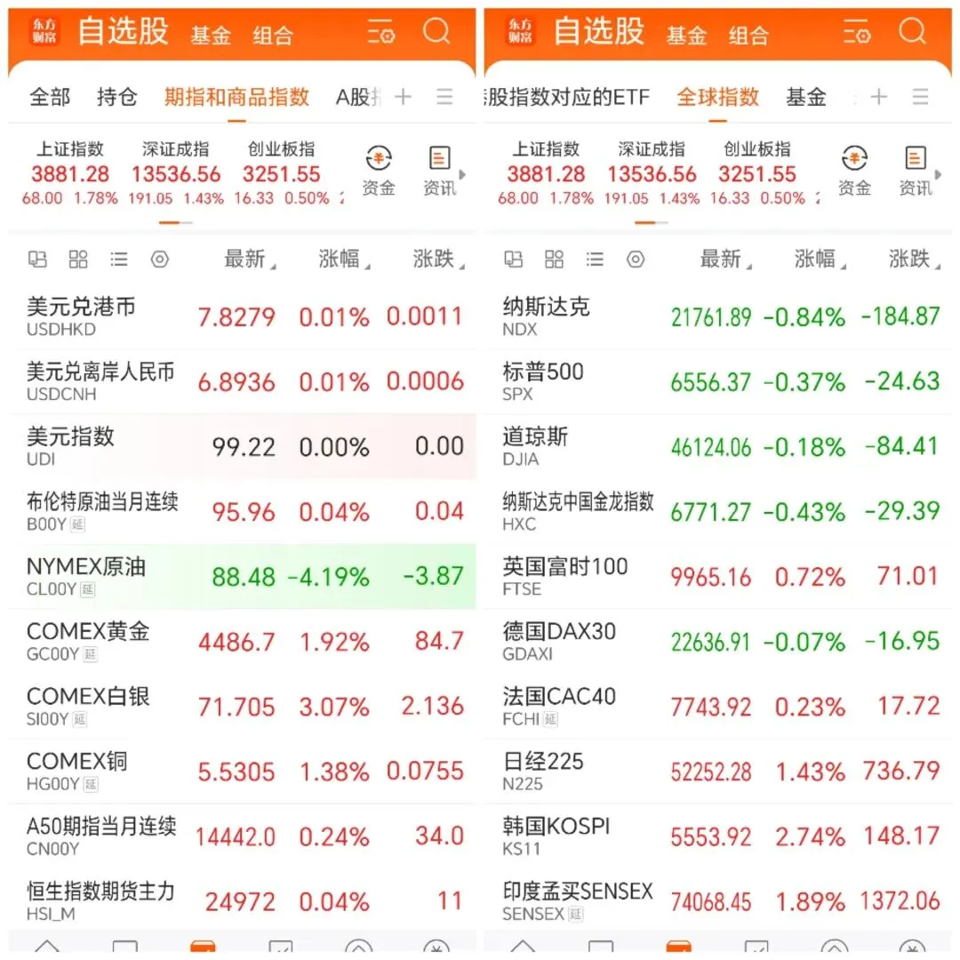 全球股指涨跌互现:在A股、港股大涨的同时,隔夜美股纳斯达克、道琼斯指数小幅收跌,而欧洲(英、法)及亚洲其他市场(日、韩、印度)普遍上涨。这显示全球市场情绪并非一致乐观,资金流向出现区域分化。