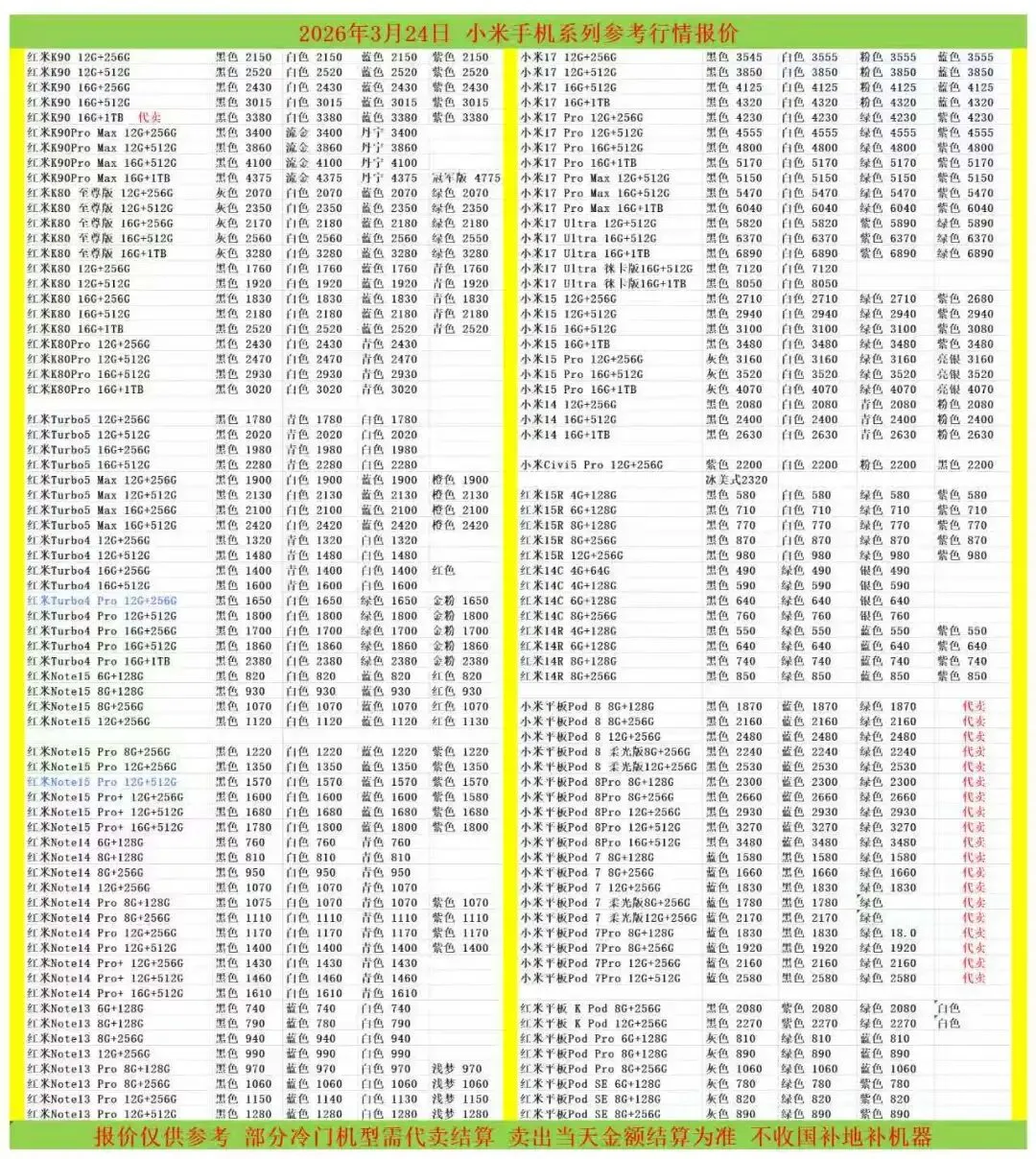 华为小米手机行情