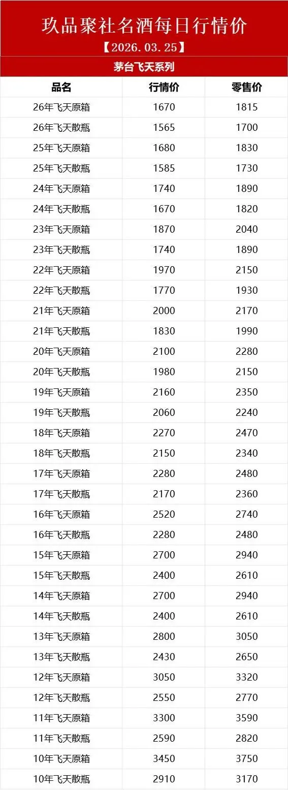 【3月25日】|茅台行情价