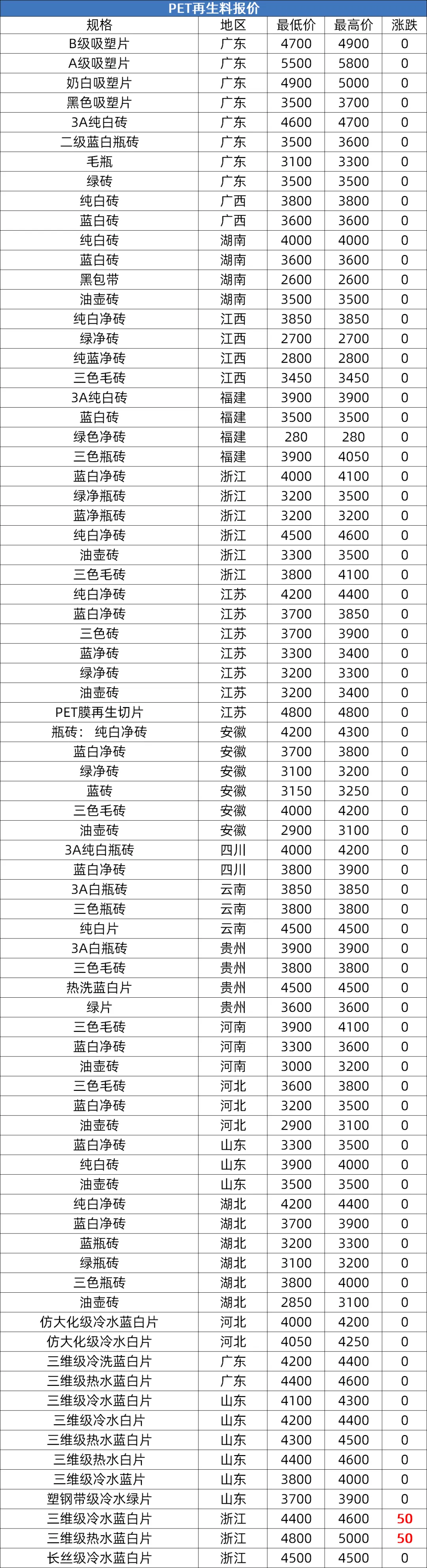 环比下降的商品共有3种,跌幅前3的产品分别为PVC(-4.67%)、PET(-1.58%)、LLDPE(-0.37%)。