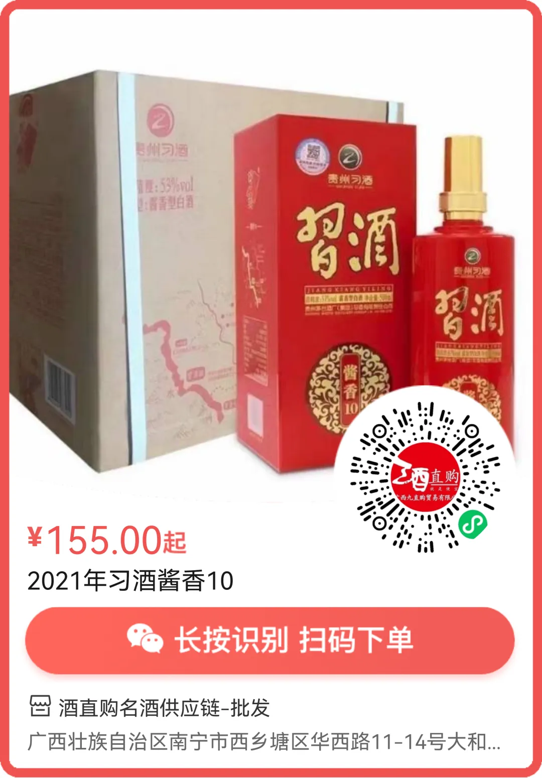 2021年53度习酒酱香10年 B-155A-A930*2020年53度老习酒 B-135A-A810*2022年53度红钻郎酒 B-285A-A1710*2021年53度典藏郎酒 B-195A-A1170*2022年53度珍15 B-310A-A1860*