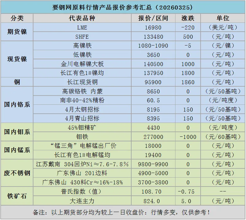 >汇总 | 要钢网原料行情产品报价参考汇总(20260325)