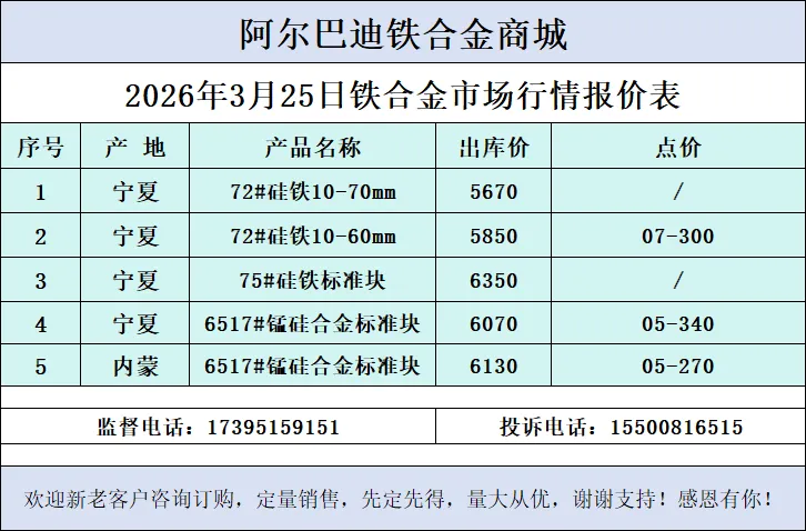 2026年3月25日 硅铁·硅锰行情(截至09:48)