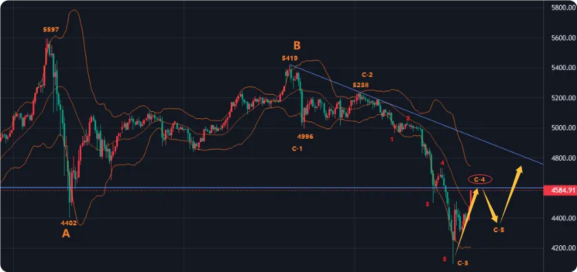 - 黄金日线级别:昨日暴跌后暴力V型反弹,从4300拉回4500上方,属超跌修复+空头回补。