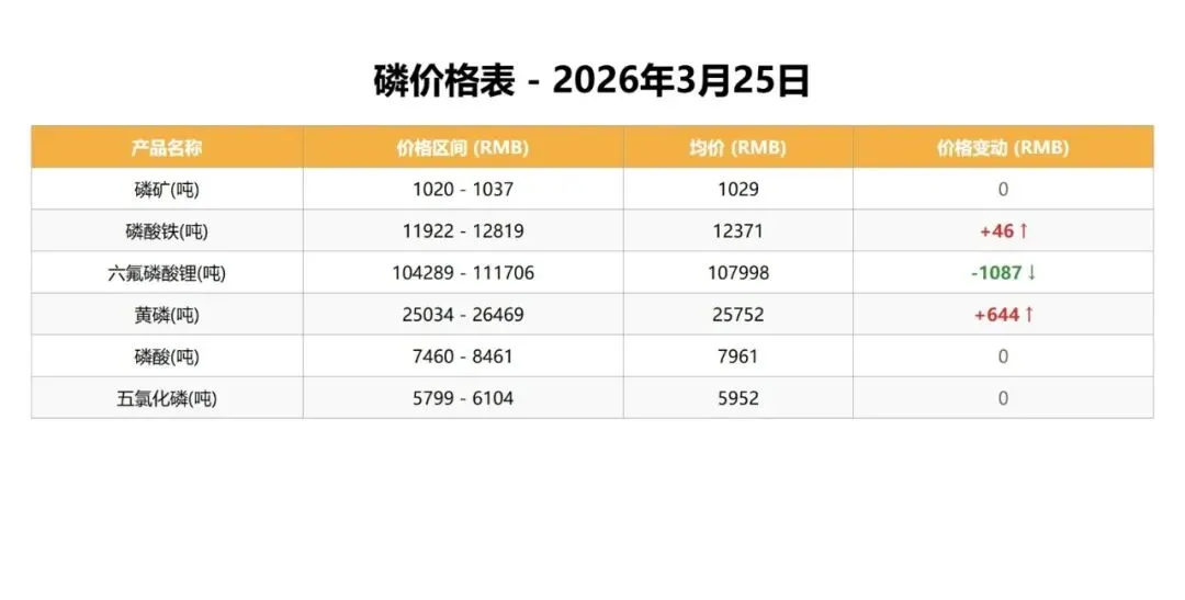 今日磷价格如下: