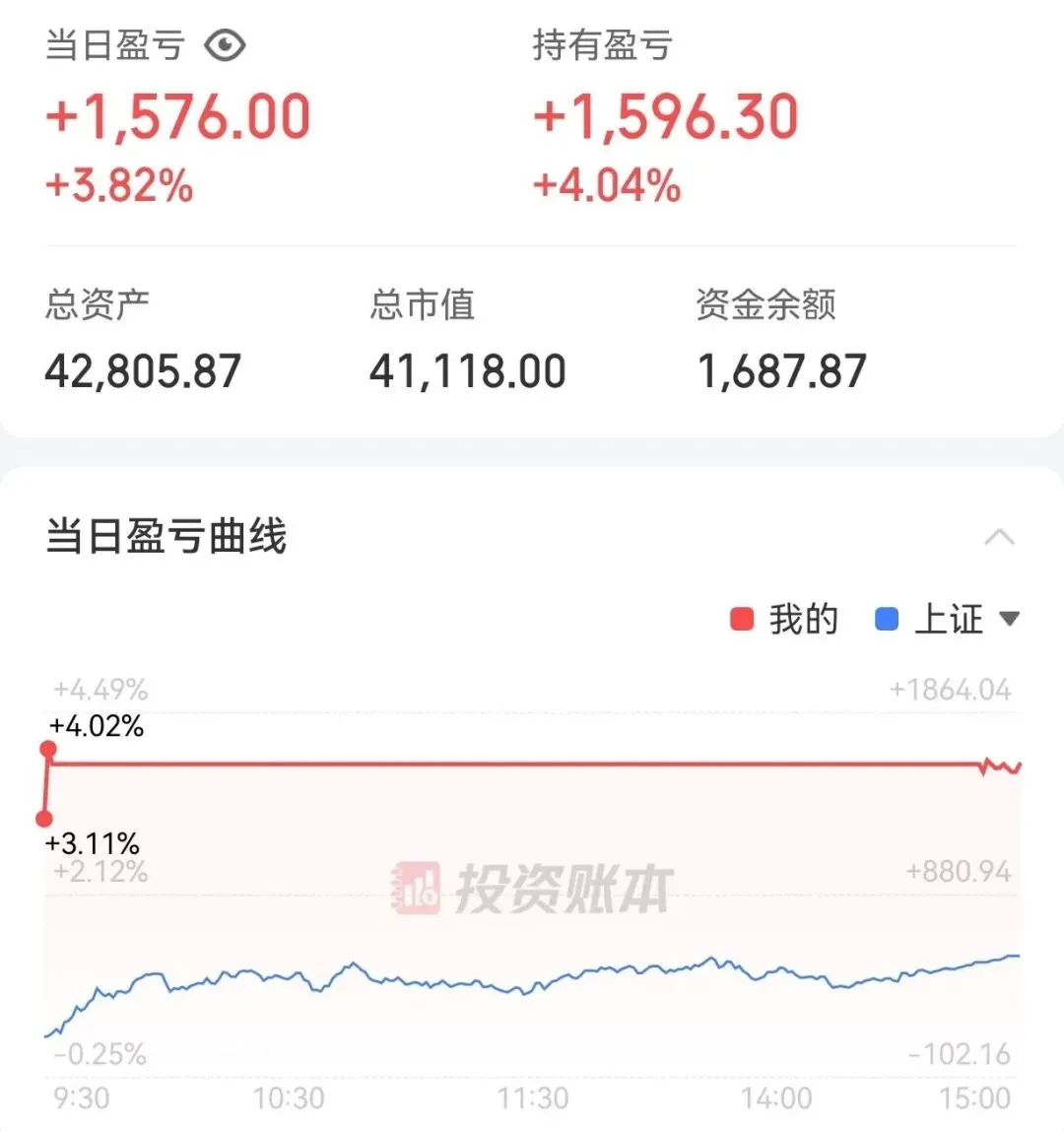 核心操作:我的交易还是和昨天一样,晒单帐户开盘卖出全仓,午后没等到右侧回落的低吸点,怕丢仓位,尾盘买回全仓,做了笔倒T。