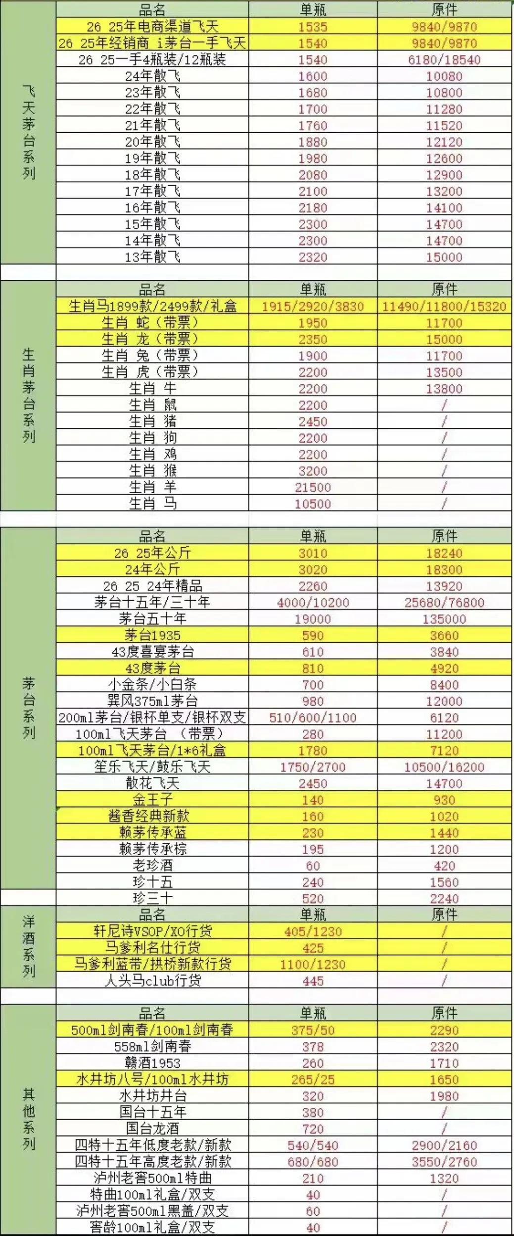 由于白酒飞天茅台价格存在实时变化、地区差异等原因,报价仅供参考。