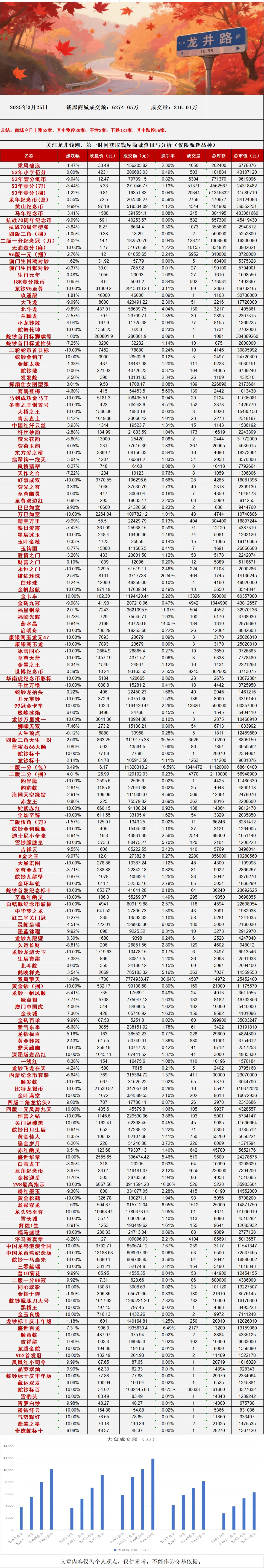 今日茅台酒价行情:3月25日白酒每日回收行情价格表