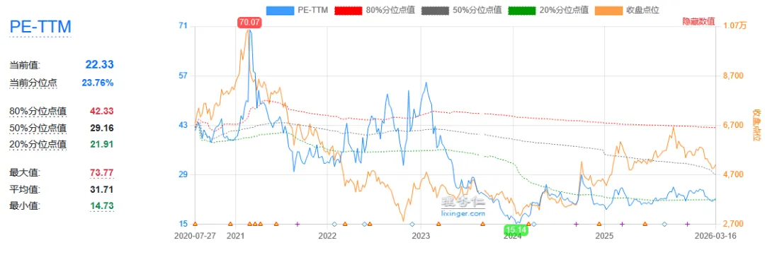 现在入手划算吗?看估值就知道:当前PE-TTM约22.3倍,近5年只排23%分位数,跟纳斯达克100(33倍)、科创50(162倍)比,便宜太多,相当于“龙头科技股打折卖”,安全边际很足。