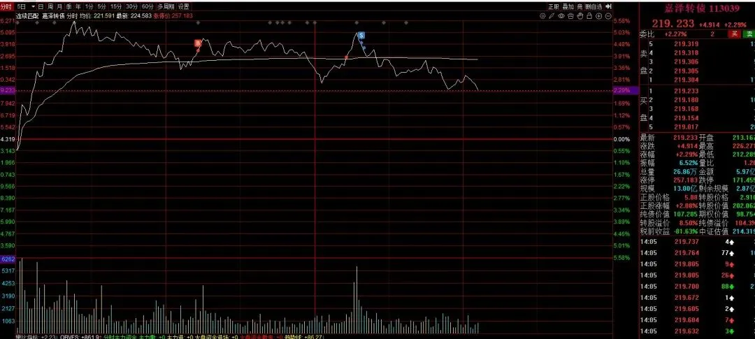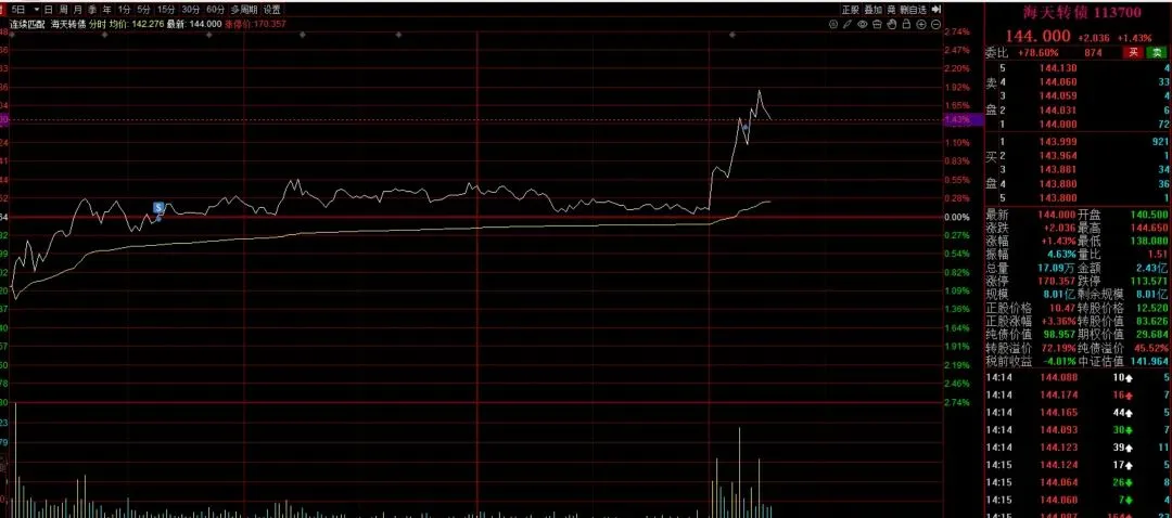 先同步海天转债的操作:这只票咱们昨天就拿着,昨天获利了没走,今天下午拉了一波,最高不到2个点,完全符合之前的预期。它的流动性确实差一点,但上涨的确定性够,咱们下午也顺利获利离场了。