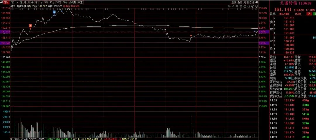 今天的核心操作,是咱们的老朋友美诺转债。这只票咱们上周五就开始动手做了,到现在跟踪了好几天,它的股性活、弹性足,走势节奏咱们门儿清,操作起来心里特别有底。全程都是跟同学们同步,一起建仓、一起减仓止盈,绝不马后炮。