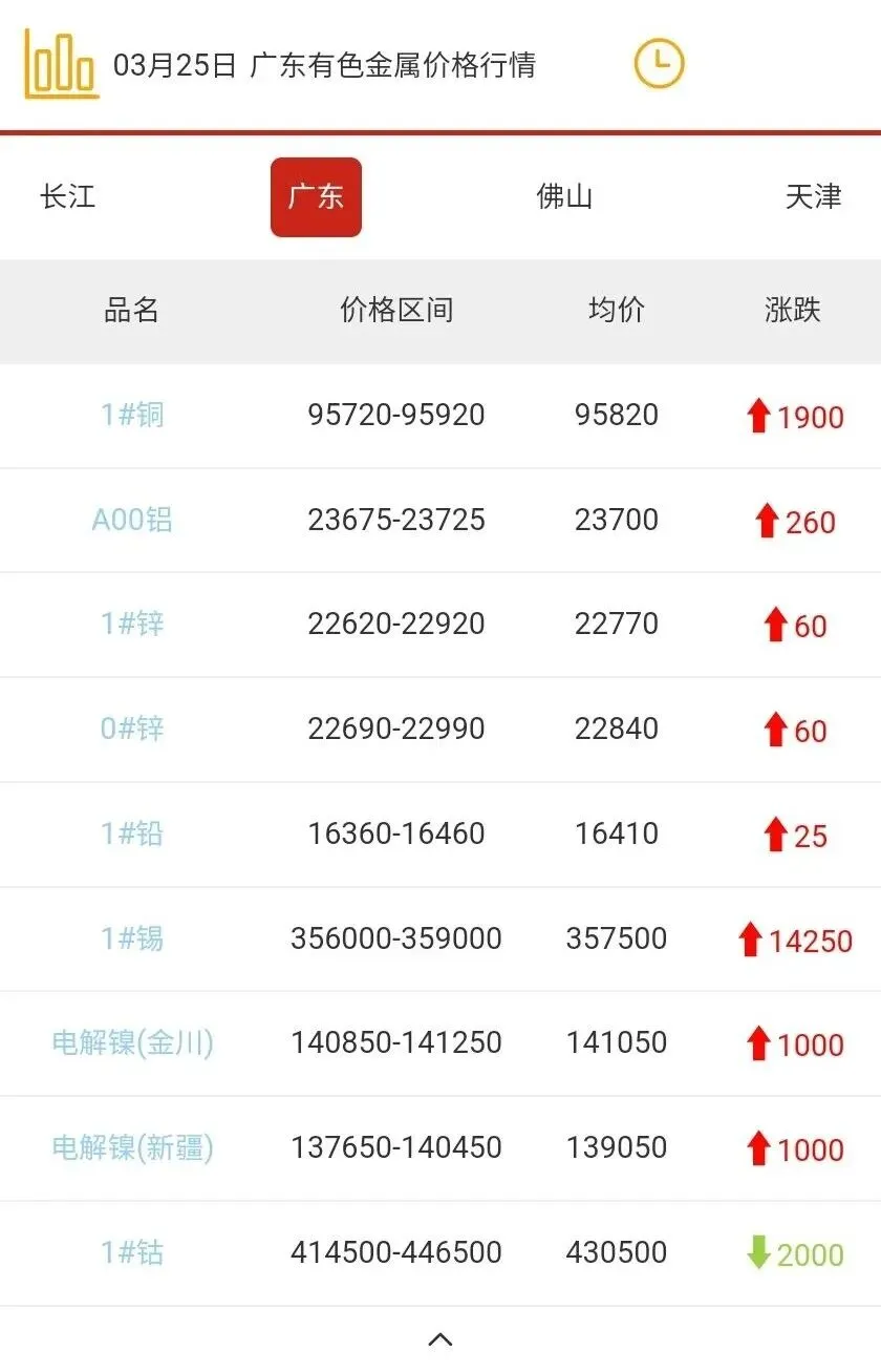 广东有色金属价格行情