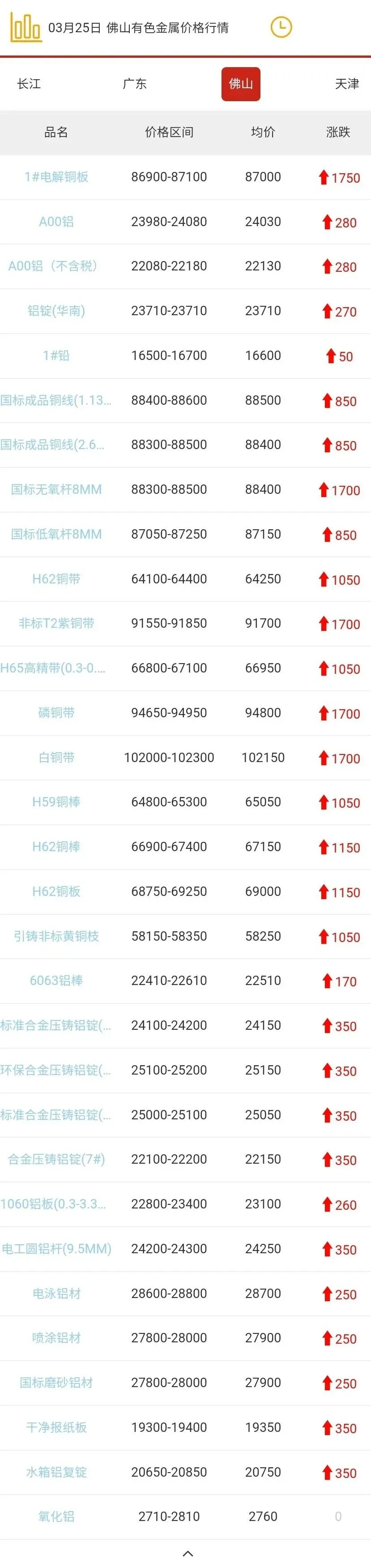 佛山有色金属价格行情