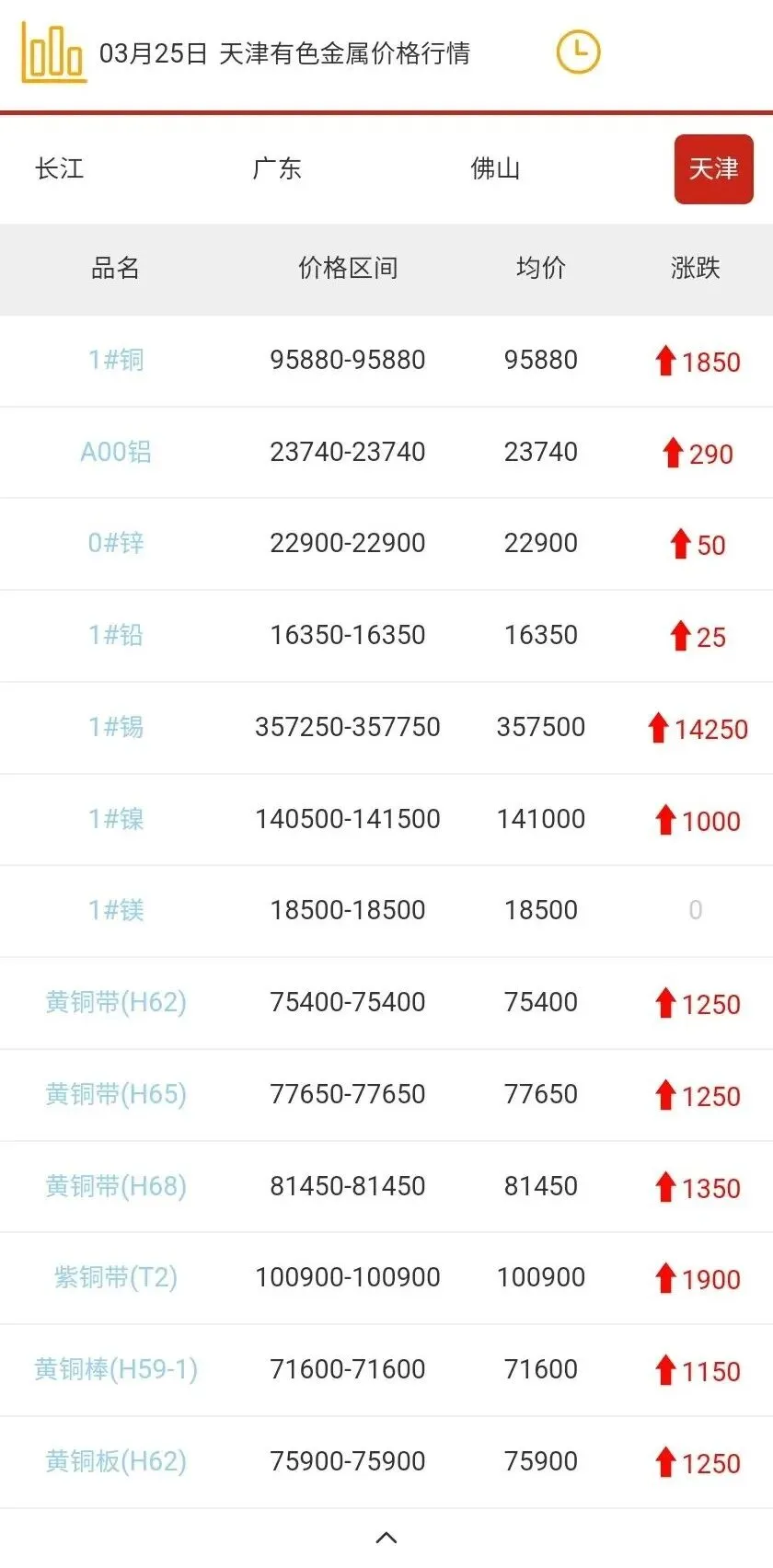 天津有色金属价格行情