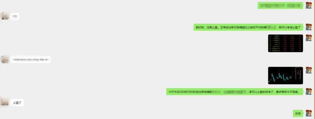 因为平常有交流,所以上周就有朋友在股票多头持仓未动的情况下,加了中证1000的买沽做保护,周一的下午就建议他止盈了,止盈的最后时间点是周一的尾盘。周一尾盘是可以明确建议买沽止盈的。