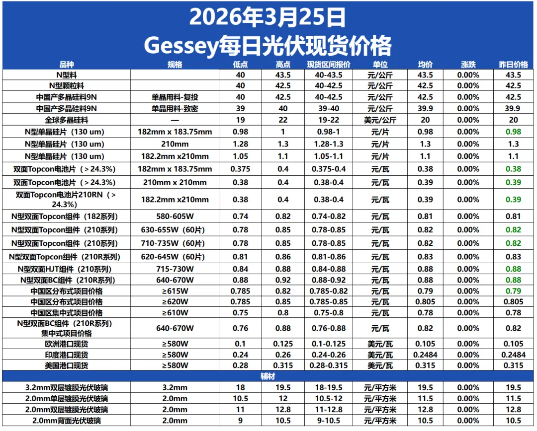 Gessey:3月25日每日光伏市场行情