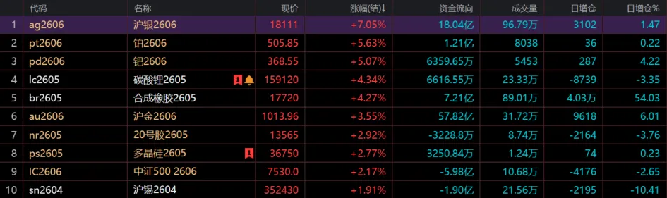 今日涨幅榜也有新变化,不再是化工独霸榜单,贵金属大幅反弹。当前中东局势不确定性仍在,操作上依旧要以风险控制为主,不盲目追高。