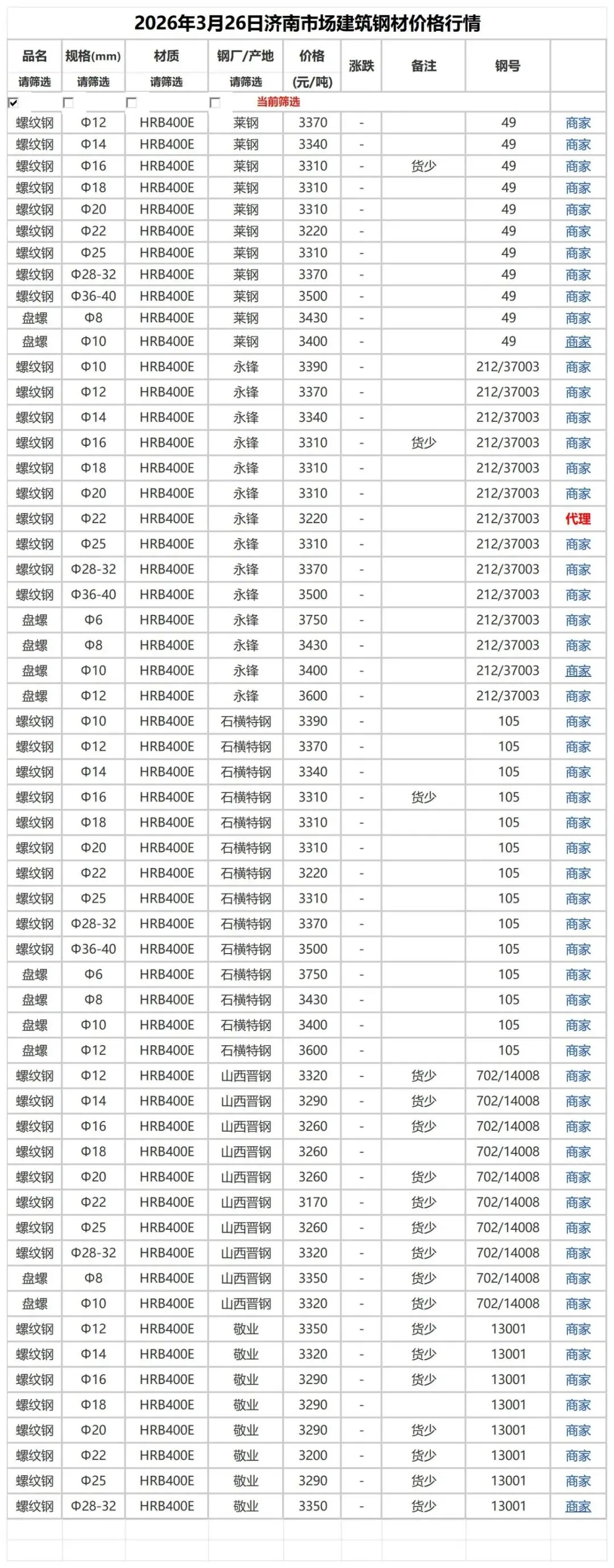 >3月26日市场建筑钢材价格行情
