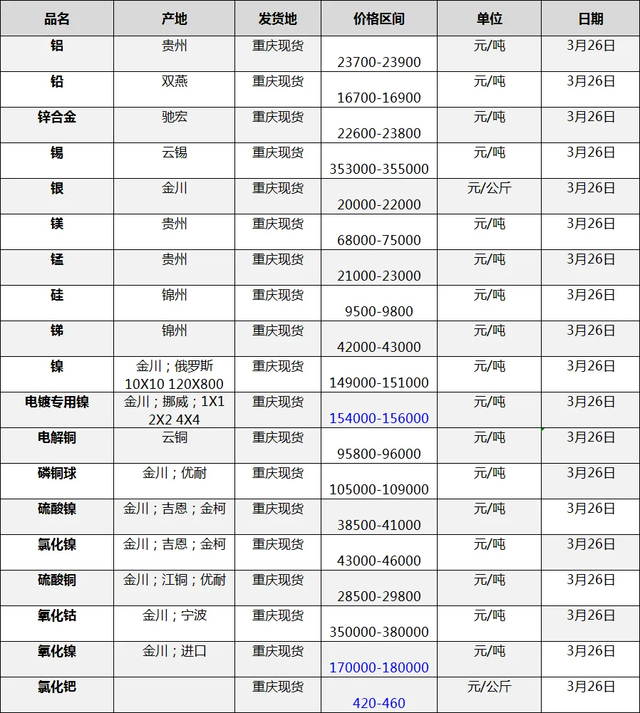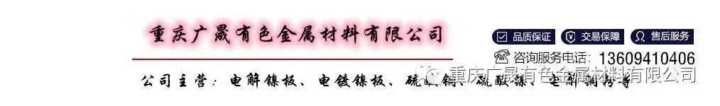 重庆广晟有色金属材料有限公司成立于2014年,是金川集团股份有限公司电解镍板、电镀镍板的西南区域授权经销商;是金川集团镍盐有限公司硫酸镍、氯化镍的授权经销商;是金川集团粉体材料厂电解镍粉、雾化镍粉、氧化铜粉等授权经销商;是有研粉末新材料股份有限公司电解铜粉、雾化铜粉、渗铜粉、各类金属粉末的授权经销商;是江西钨业集团有限公司电解钴粉、氧化钴、硫酸钴的授权经销商;是宁波雁门化工有限公司钴粉的授权经销商。同时也是中国电镀协会会员及重庆电镀协会理事单位。我司有专业的销售物流团队,为国内西南地区不锈钢企业、电镀行业、铸钢企业、合金刚企业、粉末冶金行业、陶瓷行业等提供各类专业服务的金属供应公司。我司郑重承诺:信誉第一,互惠互利,共同发展,以最优质的服务,为广大客户服务。