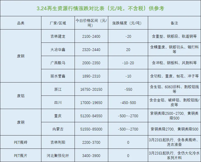 今日市场冰火两重天,铜铝价格大幅下挫,废钢区域分化明显,唯有PET品类保持平稳运行。