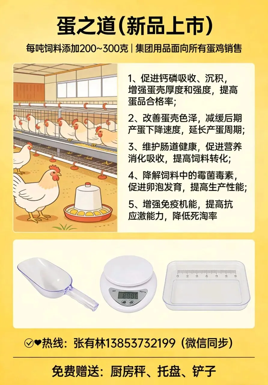 1、促进钙磷吸收、沉积,增强蛋壳厚度和强度,提高蛋品合格率。
