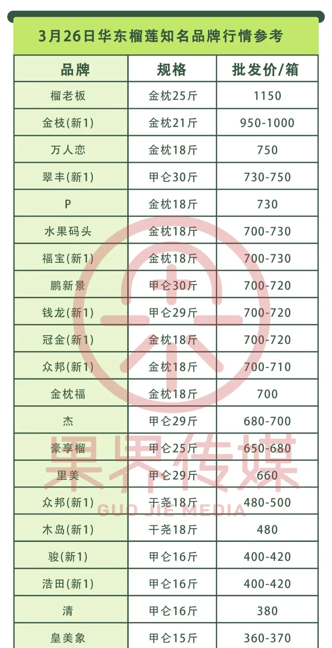 >3月26日果界传媒华东一级市场每日水果行情