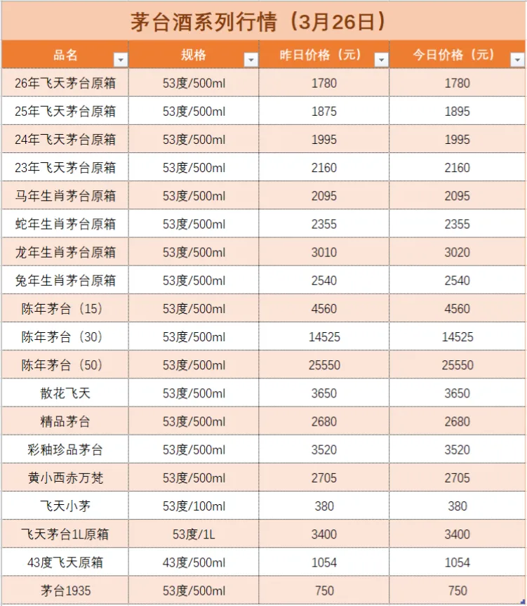 3月26日 新茅价格上涨 回收行情暂稳 白酒回收行情参考价