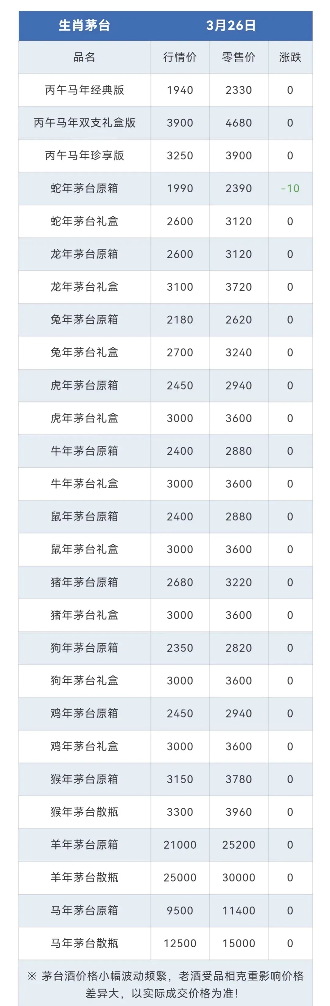 ※行情价:酒商调货价,不考虑物流运输人工成本,每个地区调货价有几十块浮动属正常现象。