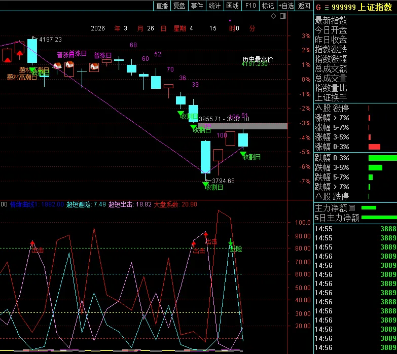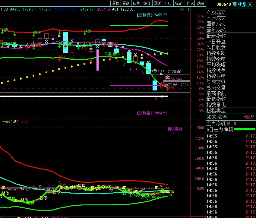 指数在BOLL下降通道,昨天说过不排除今天继续下探。量化行情下,超短情绪指标又相当好用了。(见指数副图)光伏板块周期继续回落,主力资金借龙头流出。一方面,量化板块内轮动,另一方面,明天有继续下探的可能。商业航天BOLL收缩,短期将选择方向。后期想走强还需要催化,或者盘中集体转强。今天下午,商业航天偷袭,储能跳水。但并不是说二者就此互换,主力的一个周期是非常顽固的。